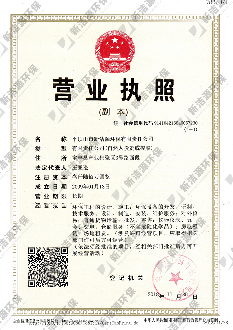 平頂山市新潔源環(huán)保有限責(zé)任公司